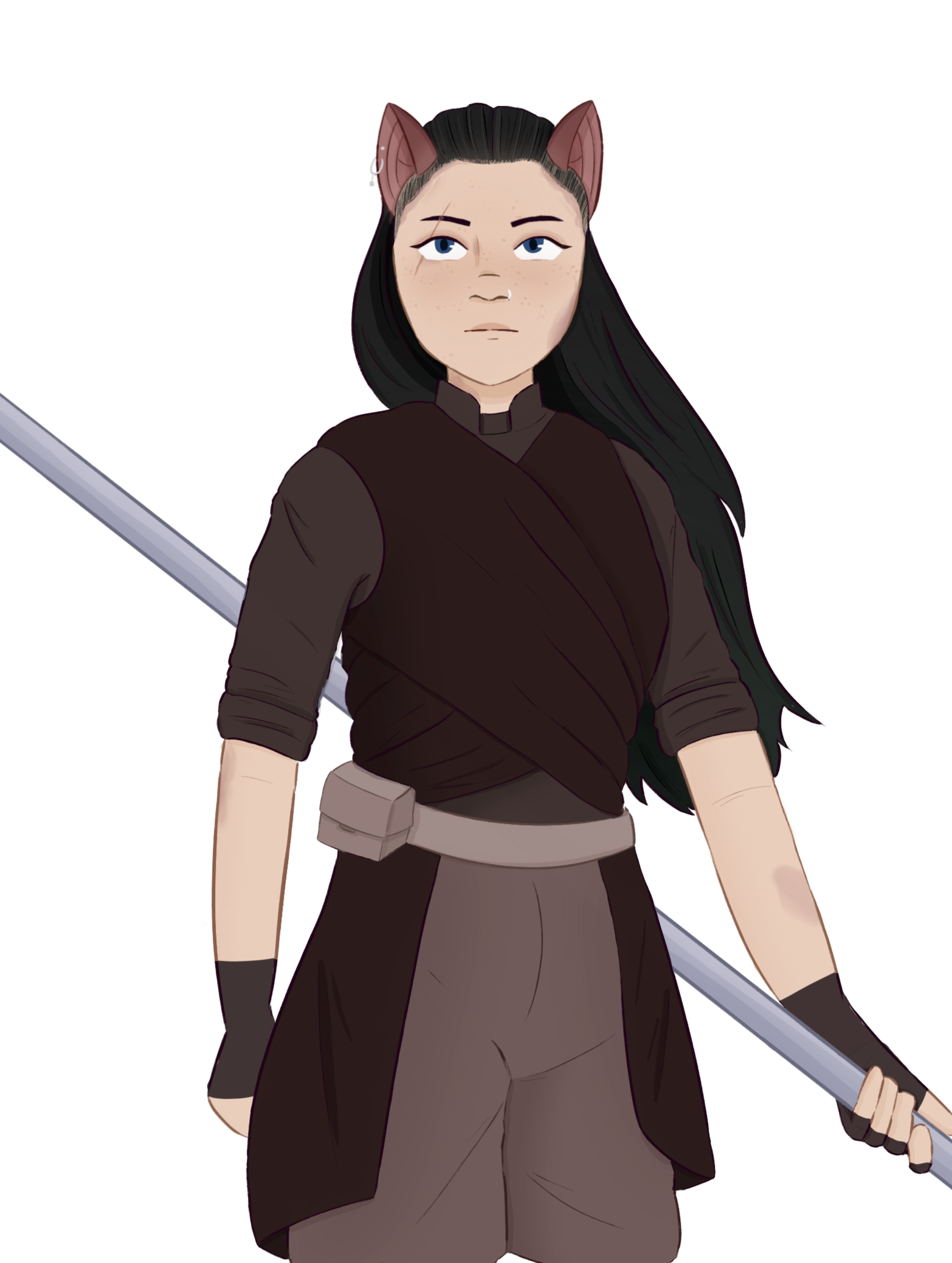 With time and effort, Elle recovers. Her legs are replaced with bionic ones below the knee. She takes up mercenary work, wielding a double-ended staff made of an Imperial electrostaff and her lightsaber. Though she is no longer Force-sensitive, she holds onto her combat training and the technical skills she learned, both as a sky-walker and an Inquisitor. Her work often overlaps with the Rebellion. After many years, she reunites with Adrien and Keldin. They make a plan to kill Lord Ochremus, once and for all.