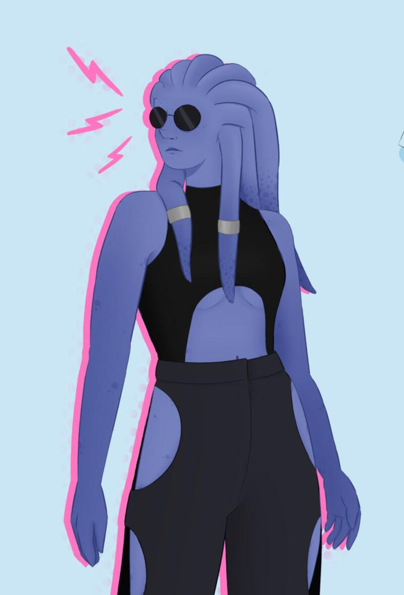 Lady is a Nautolan in her late 20s who lives in the mid-lower levels of Coruscant. After building up a rapport and working at a number of small clubs across the galaxy, she lands a residency at one not far from her apartment in the entertainment district. Lady is seldom seen dressed in anything but black and wearing her fully tinted sunglasses.