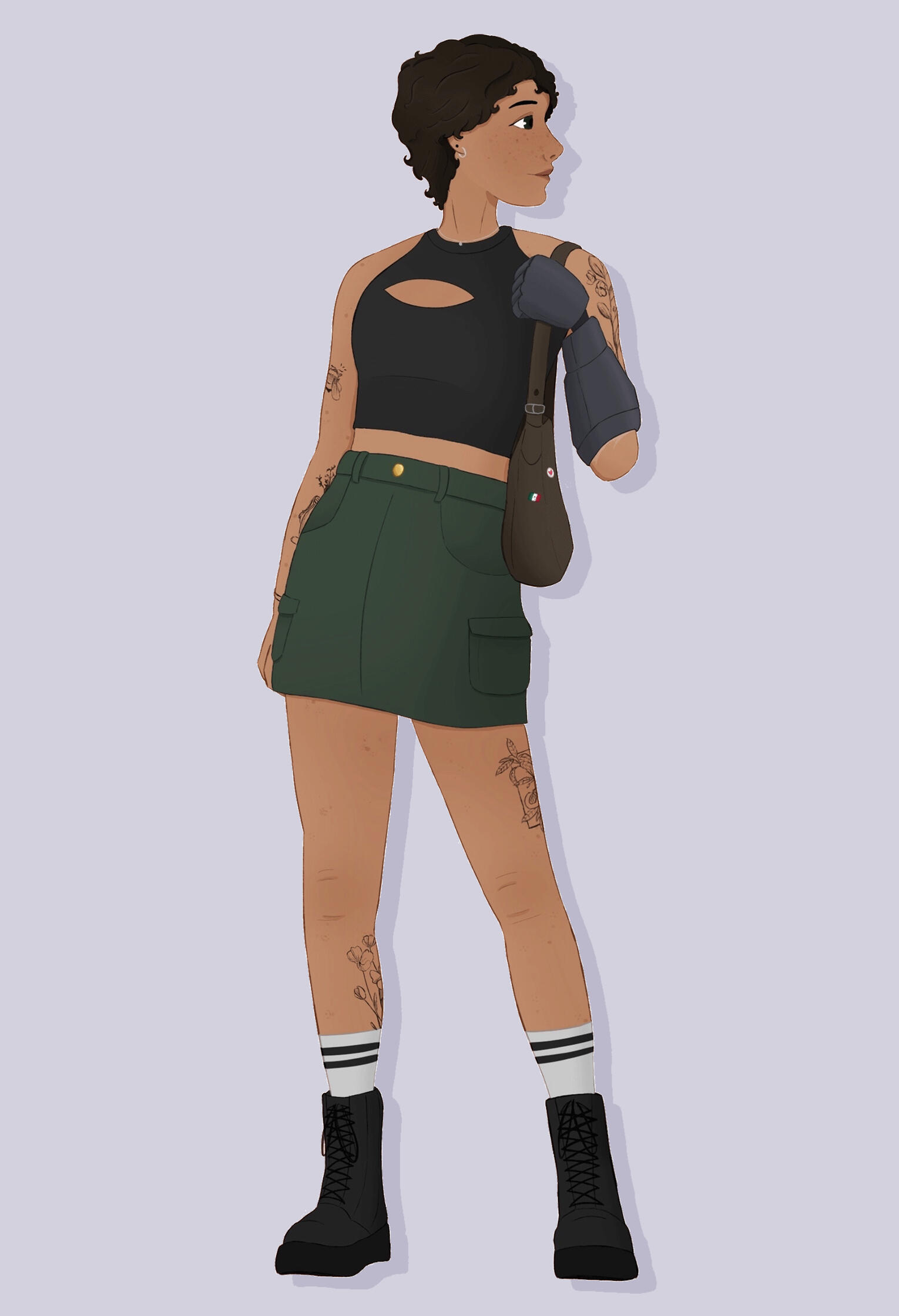 Alondra Vasquez, runs a safehouse for people seeking sanctuary. Leaving behind her family in Hermosillo, Mexico after graduating high school, she pursues an EMT career in the United States. She’s excited to be back in the city she grew up in; but her excitement is short-lived. Alondra finds herself the victim of a hate crime at the hands of a hazing incident from her fellow cadets. She falls out of a two-story window, landing on her left arm and shattering her radius. Alone in a city she has limited childhood memory of, Alondra is alone and in pain. She’s taken in by an older woman with ties to the underground cybernetics world. By now, the only way to save her arm is to amputate; the woman arranges not only her accommodations while her arm heals, but an experimental bionic replacement.Following her recovery, Alondra moves to Los Angeles and begins a career as a mercenary. She makes a name for herself and settles some big scores, meeting Sasha “Colby” Colburn— an ex-ACA agent looking to help people without bureaucracy and oversight— along the way.Alondra gets word that the safehouse her rescuer ran in Tucson was raided. Not long after, an offer she put down on a parcel of land outside of Fresno has been approved. Alondra must made a decision: mercenary life with Colby in LA, or her dream of continuing the work that her rescuer began. She chooses the latter, making a mutual promise with Colby that they don’t speak a word of each other’s whereabouts/history to anybody.Dubbed “The Nest”, Alondra’s safehouse provides asylum for victims of any kind: illegal bionics, trafficking, mercenaries, and more.