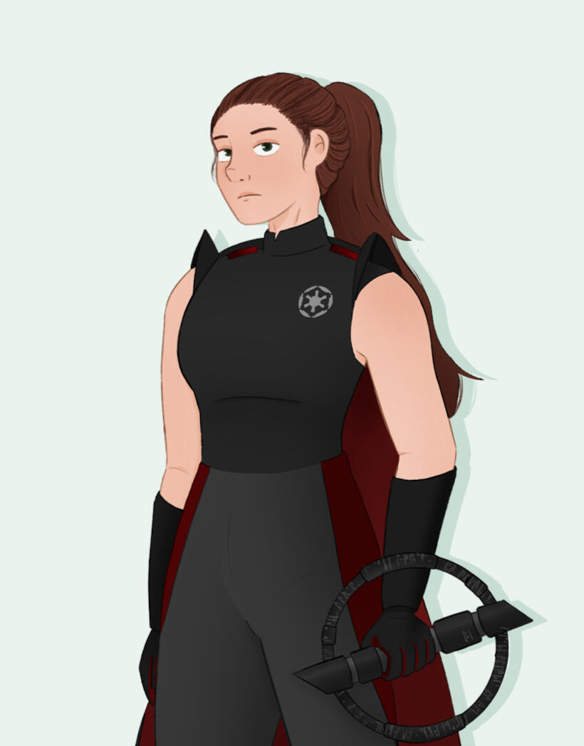 Adrien Vatt is a former Jedi Knight who receives her rank after the premature death of her master. Her hair is naturally a light sort of pink, but she dyes it crimson red for many years. She is an older sister figure to Lilith, a Jedi Padawan she trains with. Adrien is ushered into the Inquisitorius when the Republic falls, where she is trained to hunt and kill any surviving Jedi. She works alongside Keldin, an old Jedi friend of hers. The two of them rekindle their romantic relationshipas a means of survival.