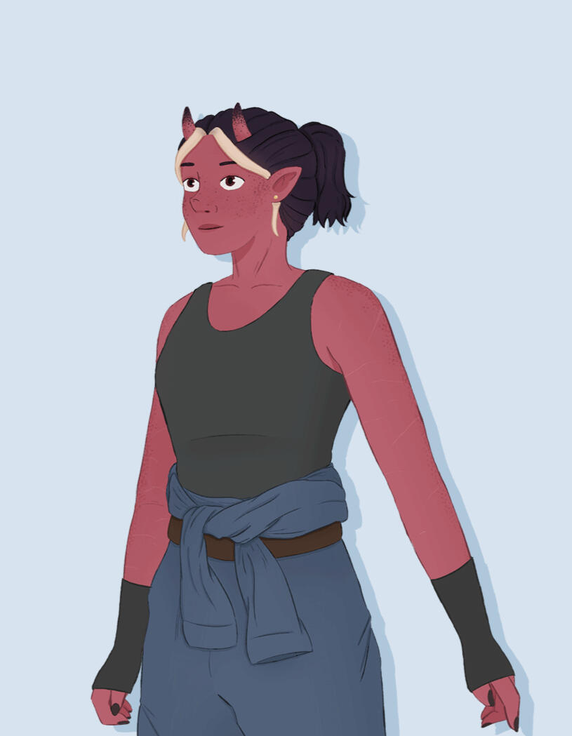 Arthion Roth is a half-Devaronian, half-Twi'lek pilot who founds Lunar Squadron. Growing up, she never quite fits in due to her unusual appearance. Her parents provide her with love and support, but as soon as she's of age, she knows that she needs to leave home and see the galaxy. Arth gets her pilot's license and spends her latter teen years/early adulthood saving for and refurbishing a small freighter— the Ephemera. She travels to Coruscant, where two teenage locals, Dox and Vira, show her around and help her to fit in. Arth takes up various jobs transporting goods and repairing ships.