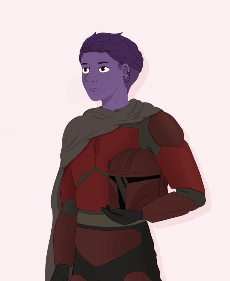 Sevitri Medina is a Mandalorian who grows up in a small village away from Mandalore. The village that he grows up in is surrounded by trees and lush, rolling hills. After his parents meet while traveling the galaxy in their twenties, they settle down alongside a couple other Mandalorian families in favor of a simple life. His mother sings; his father plays the fiddle.