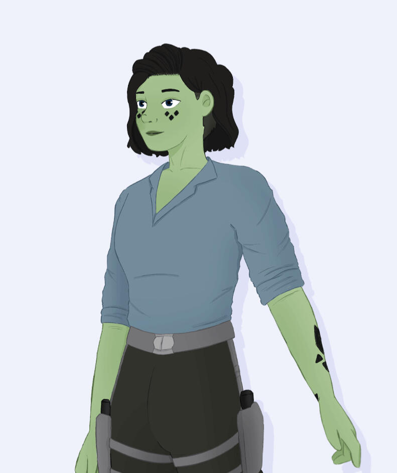 Dallian Sorenson starts out as medical personnel on the planet Naboo. As a teen, she trials to become a handmaiden for the queen, but is disqualified on a technicality related to her tattoos. She pivots to working in the medical sector, serving lots of refugees passing through Naboo as part of Senator Amidala's outreach program. She continues to add to her tattoos now that there's nothing barring her from doing so.