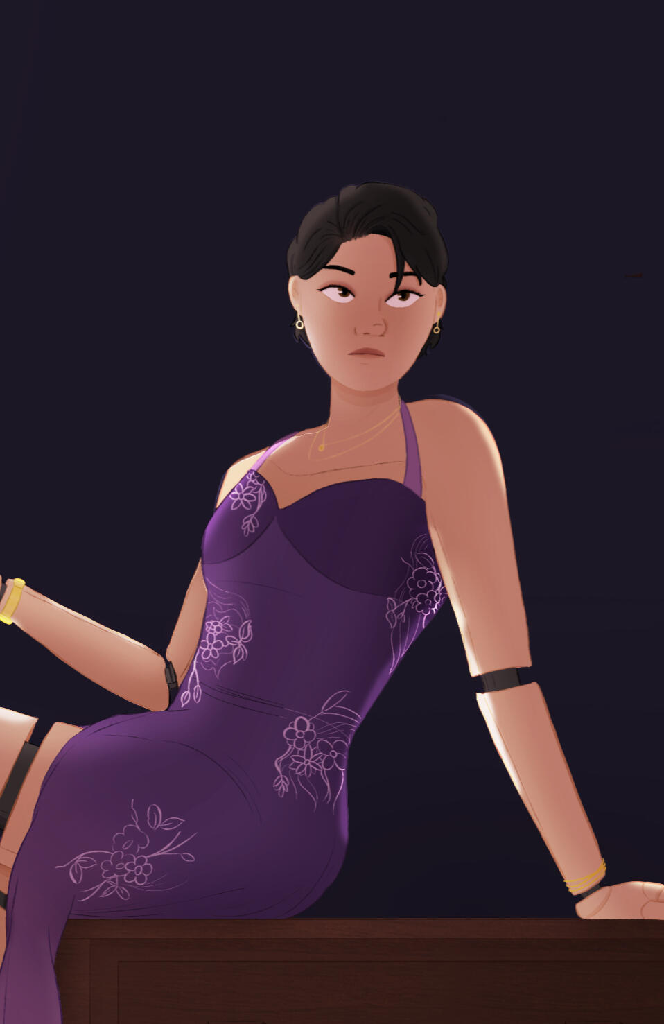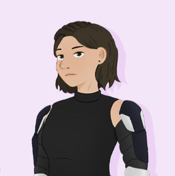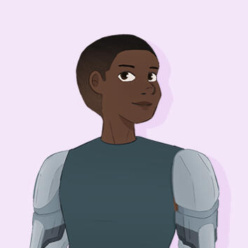 Even though she's years newer than the main cast, I have fallen in love with Nora. She was inspired by a Charlie character named Emma- a medical test subject from the 80s who lives nearly frozen in time. Charlie and I created these OCs months/years before we met, but found a lot of overlap. I asked the question, "if we have the technology in the 2020s to upload a human brain to a robot body, who was the first ever patient that kickstarted this technology?" Having a character like Nora who pulls strings from the shadows and is always one step ahead is so compelling and also a little bit haunting. Whereas Adya's cyborg identity is proper and Caelius's is edgy, Nora's is a bit old and grotesque. She's not state of the art; she's a cobbled-together mess of experiments and secrets.